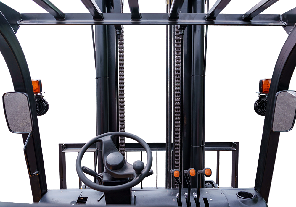 ● Cabine au design ergonomique avec un espace généreux pour les jambes et la tête, un volant réglable et des sièges confortables.